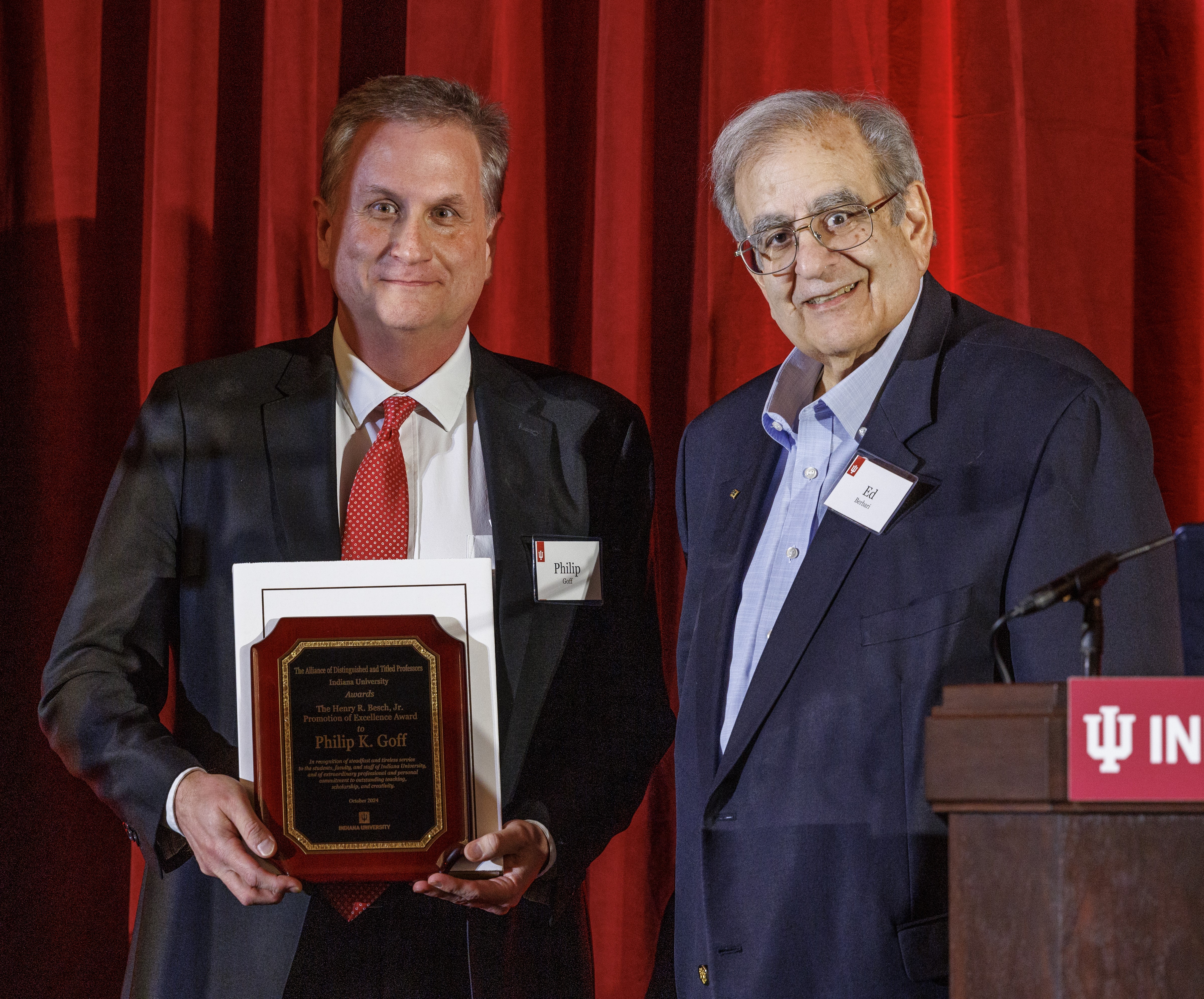 Chancellor’s Professor of History in the IU School of Liberal Arts at Indianapolis and executive director of the Center for the Study of Religion and American Culture, Philip K. Goff, has received the 2024 Henry R. Besch, Jr. Promotion of Excellence Award from the Alliance of Distinguished and Titled Professors at Indiana University.